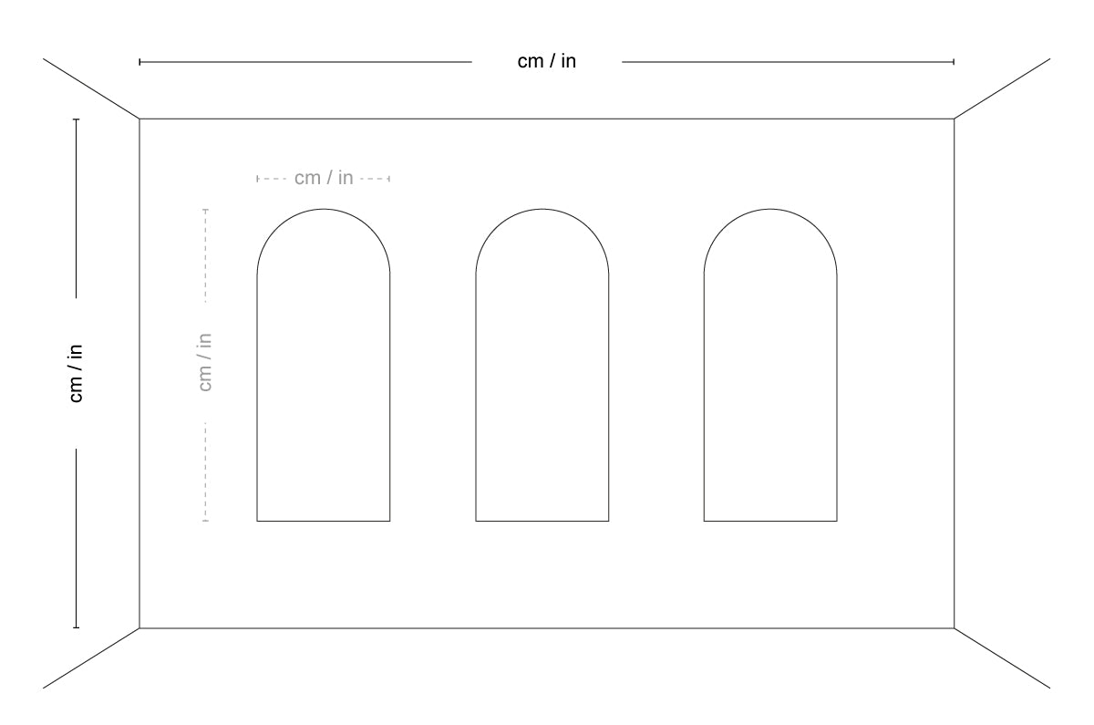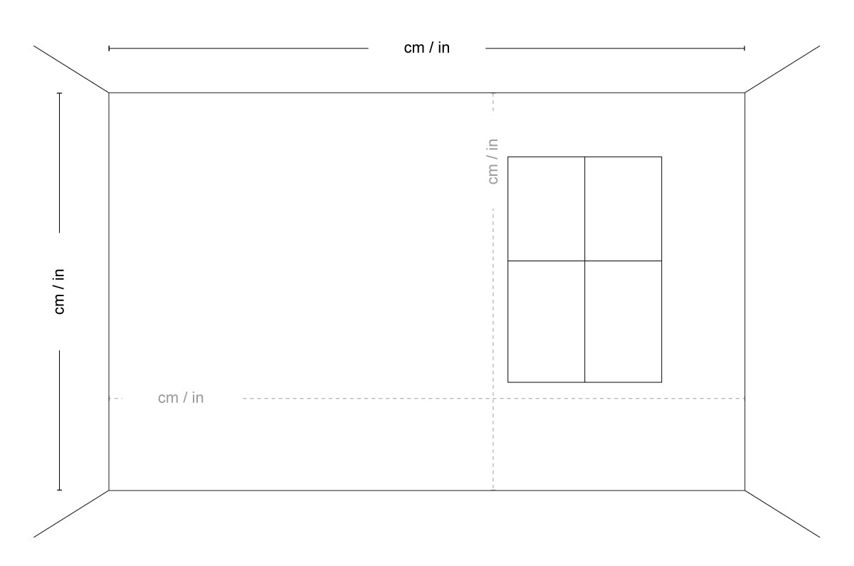 Wenn sich an der Wand Fenster, Türen, Nischen oder andere feste Elemente befinden, messen Sie deren Höhe, Breite und Abstand zum Boden und zur Wandkante.